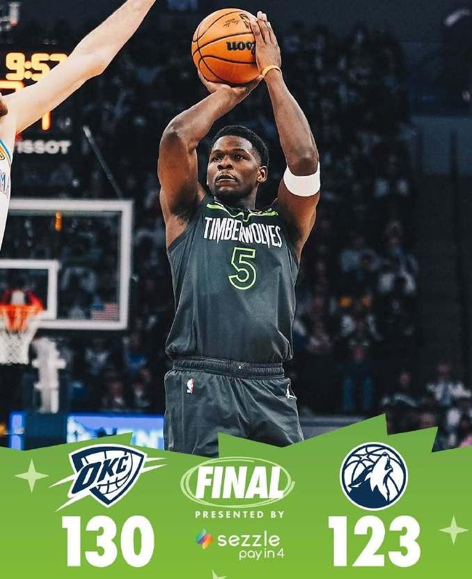 雷霆 130-123 力克森林狼:亚历山大闪耀全场,雷霆主场奏凯